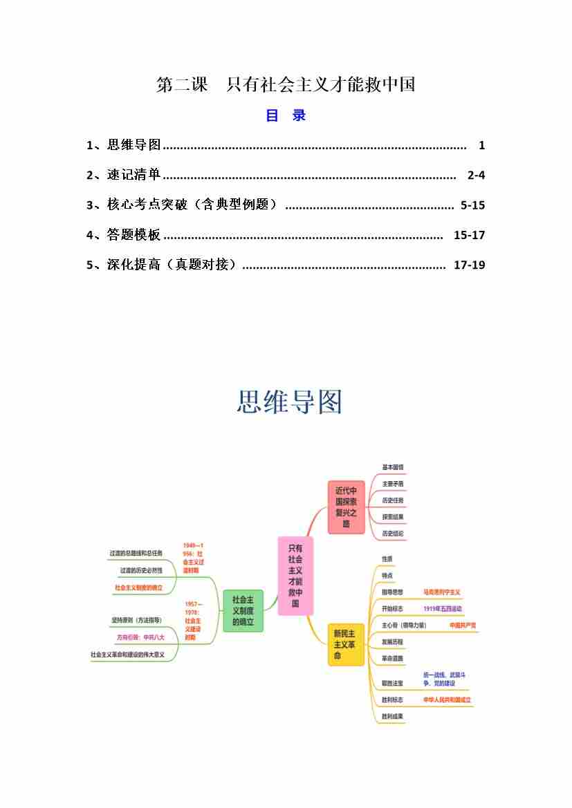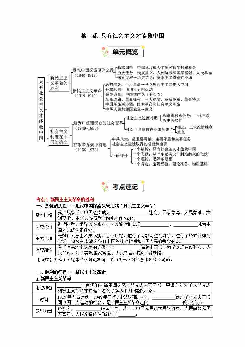 第二课 只有社会主义才能救中国(知识清单)(统编版必修1)