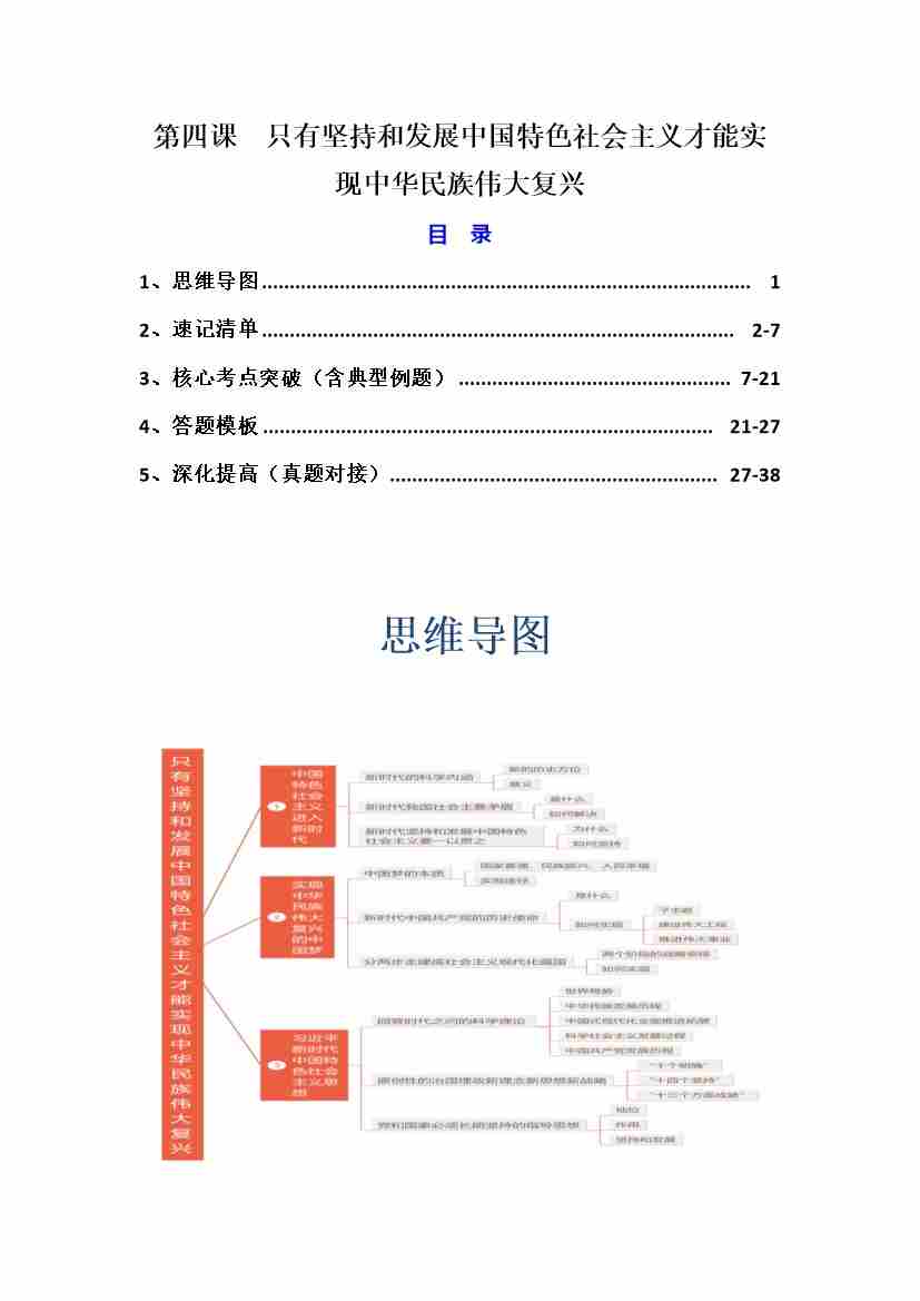 第四课 只有坚持和发展中国特色社会主义才能实现中华民族伟大复兴(知识清单)