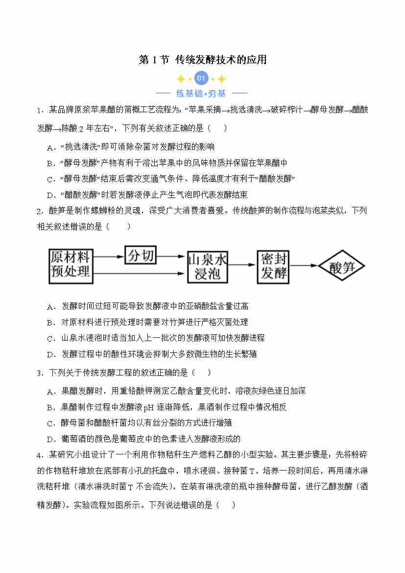 1.1 传统发酵技术的应用(原卷版)
