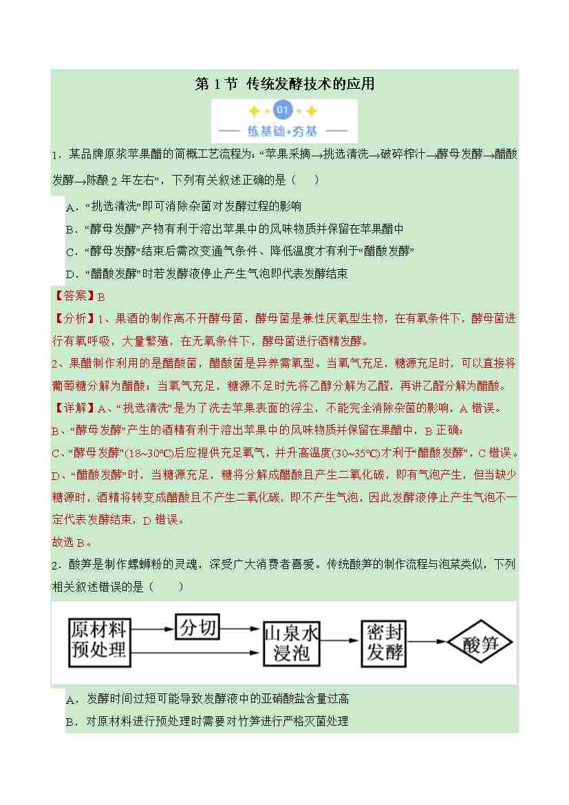 1.1 传统发酵技术的应用(解析版)