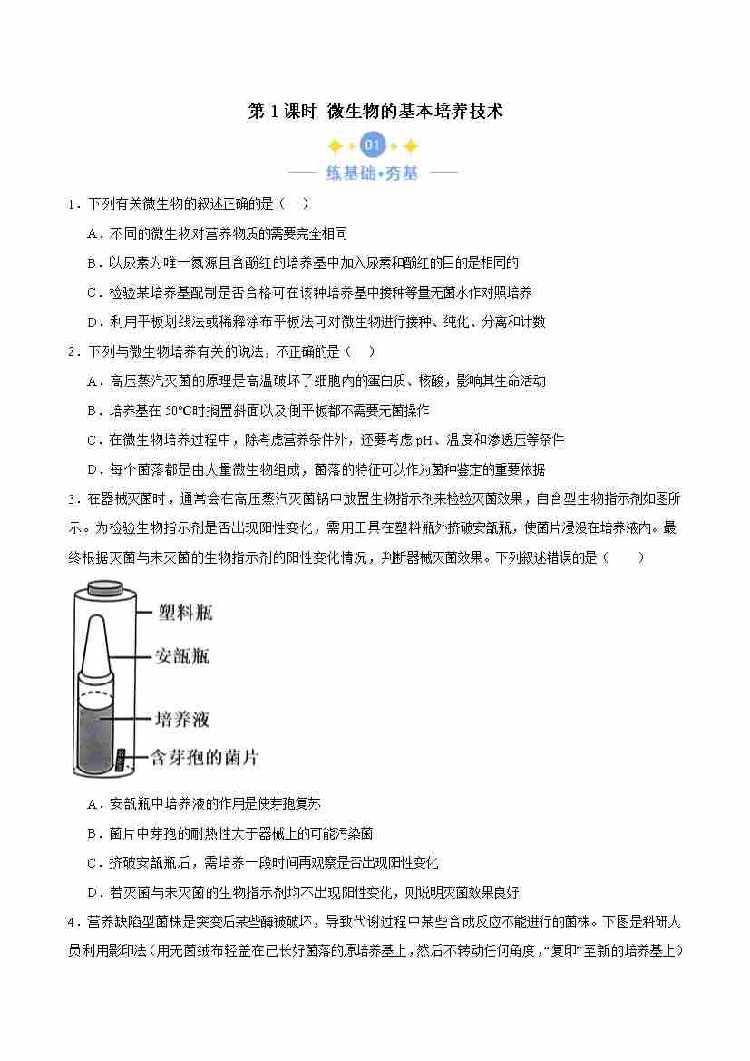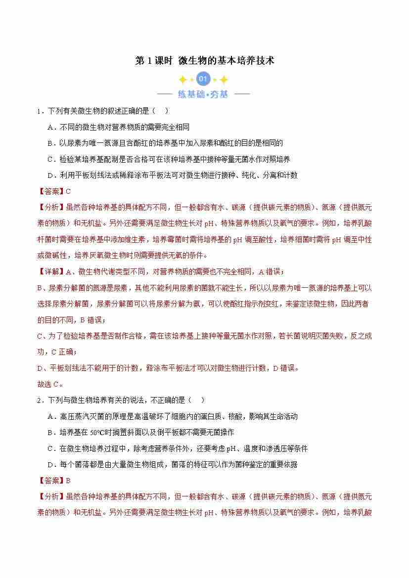1.2.1 微生物的培养技术(解析版)