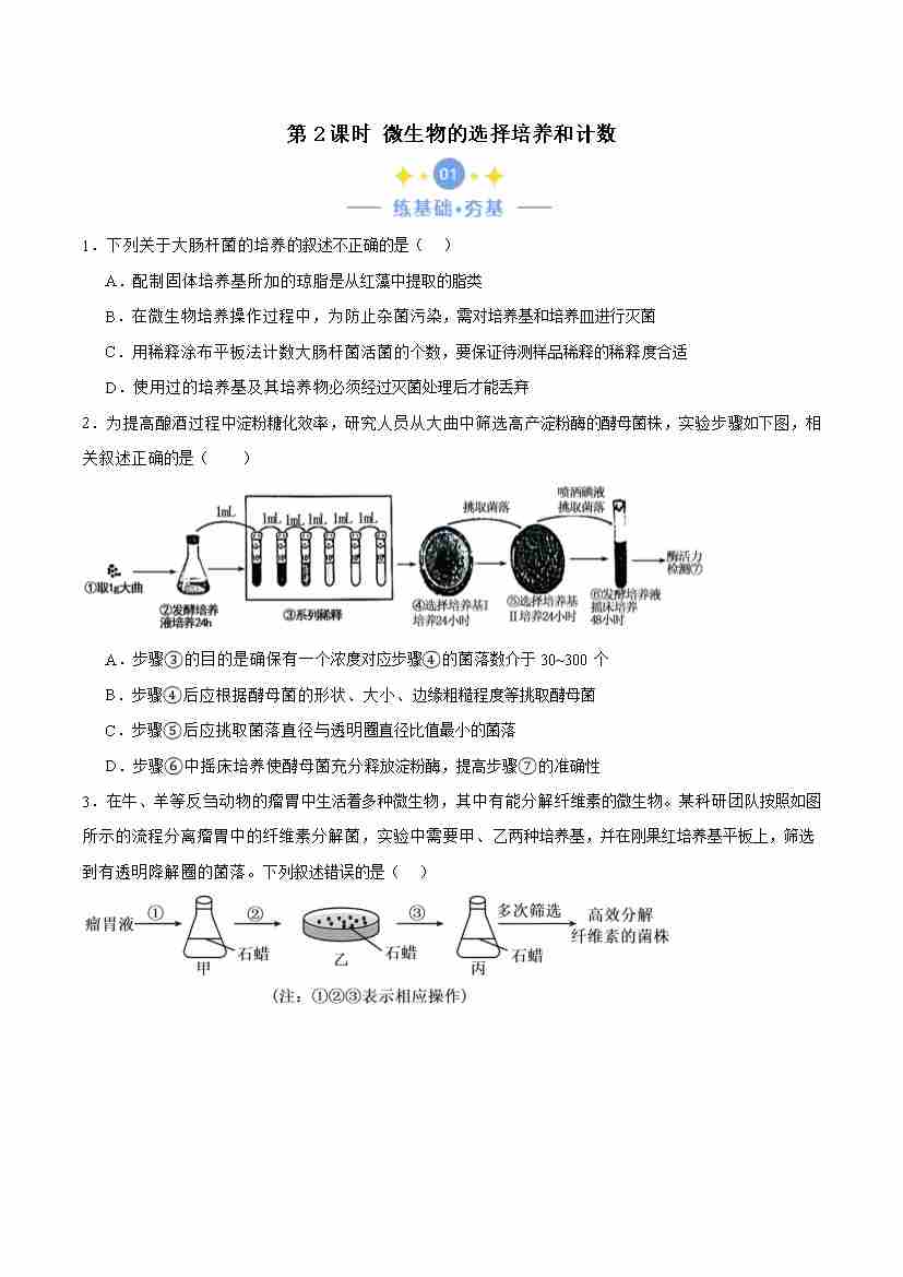 1.2.2 微生物的选择培养与计数(原卷版)