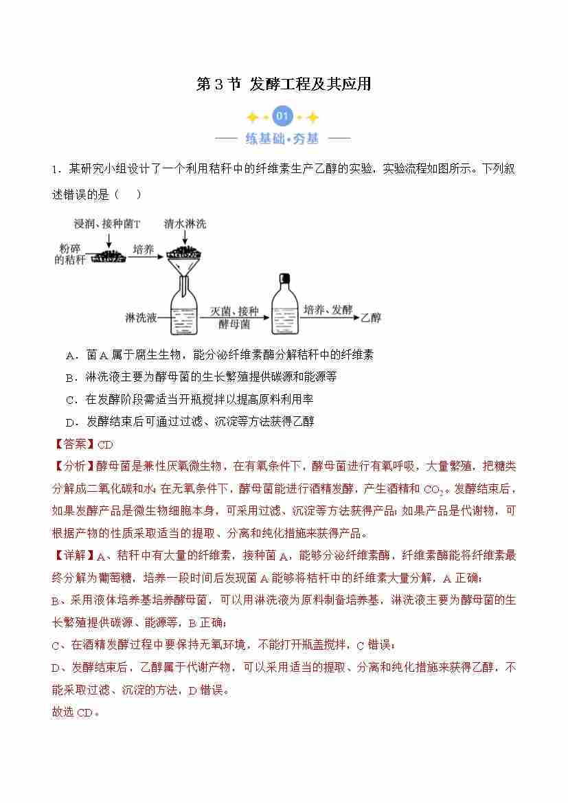 1.3 发酵工程及其应用(解析版)