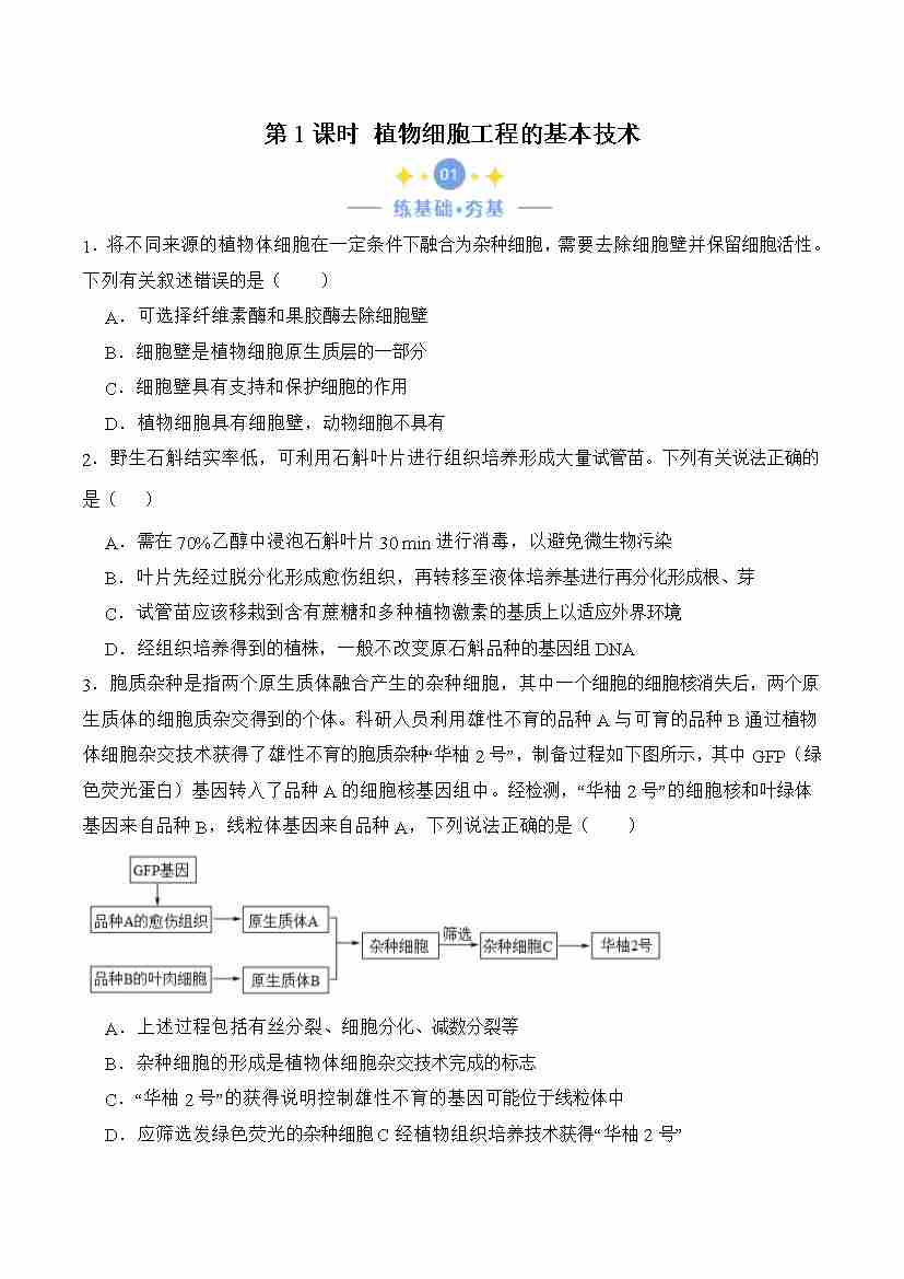 2.1.1 植物细胞工程的基本技术(原卷版)