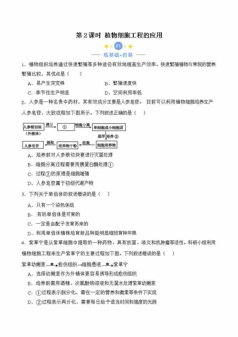 2.1.2 植物细胞工程的应用(原卷版)