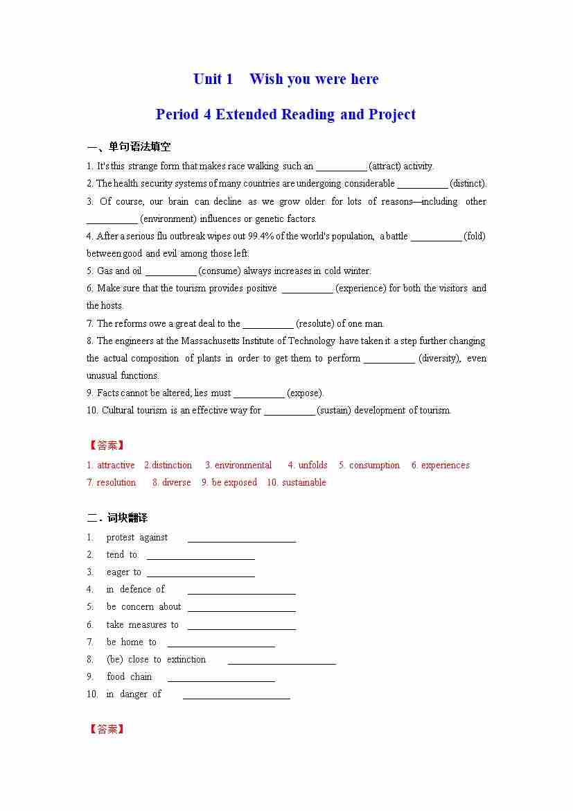 选择性必修第三册Unit4 Protecting Our Heritage Sites(教师版)