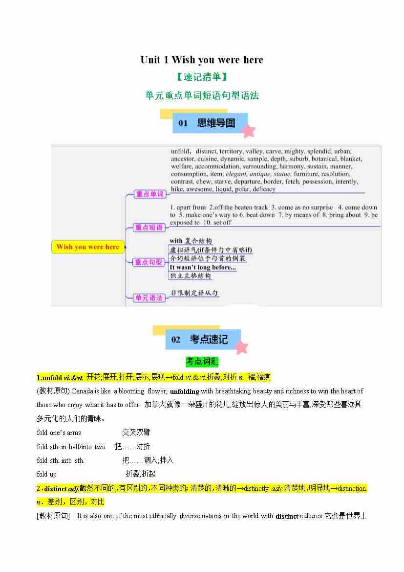 Unit 1 Wish you were here(知识清单)(学生版)