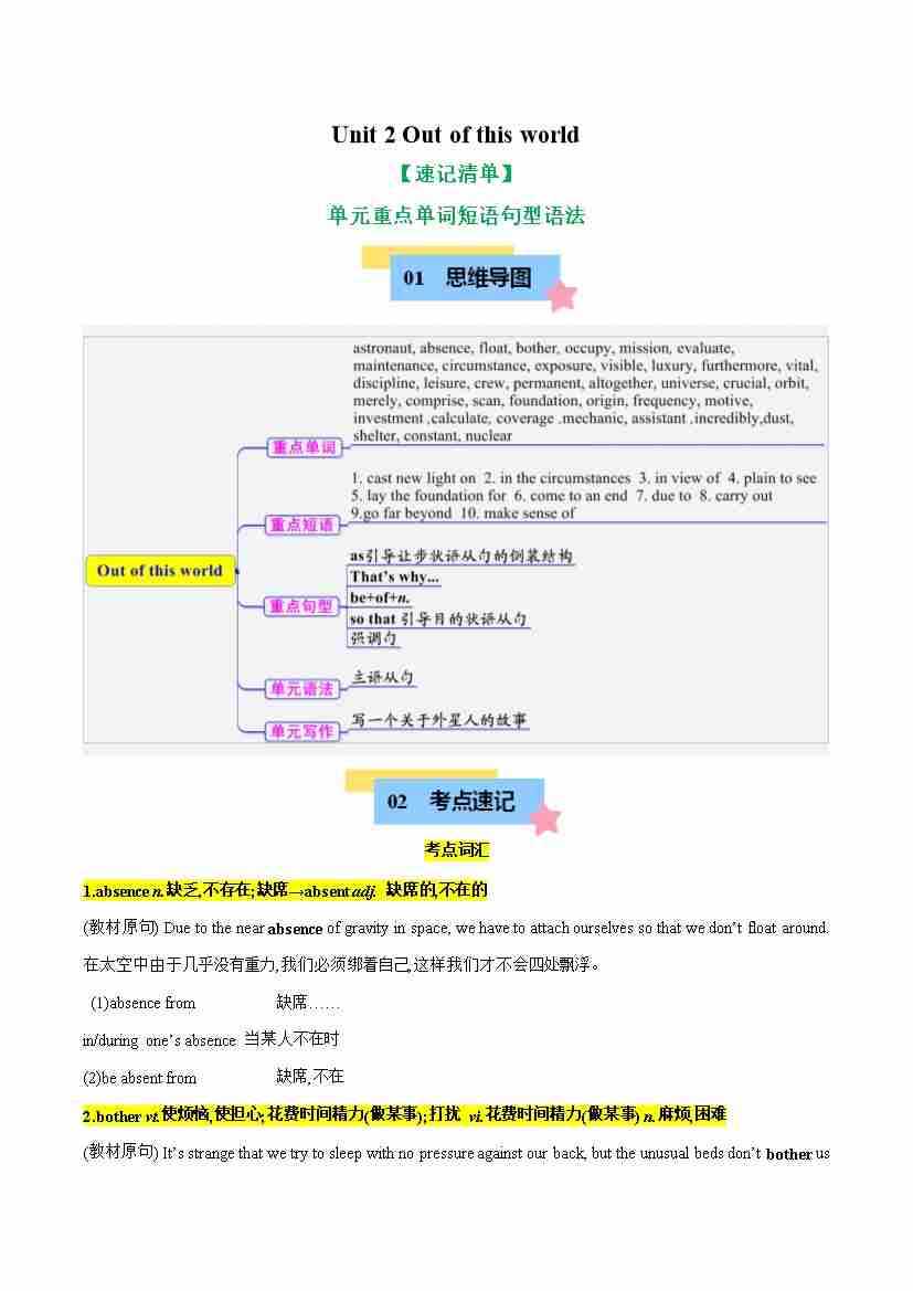 Unit 2 Out of this world(知识清单)(学生版)