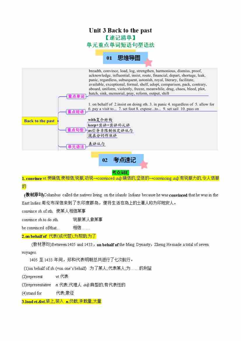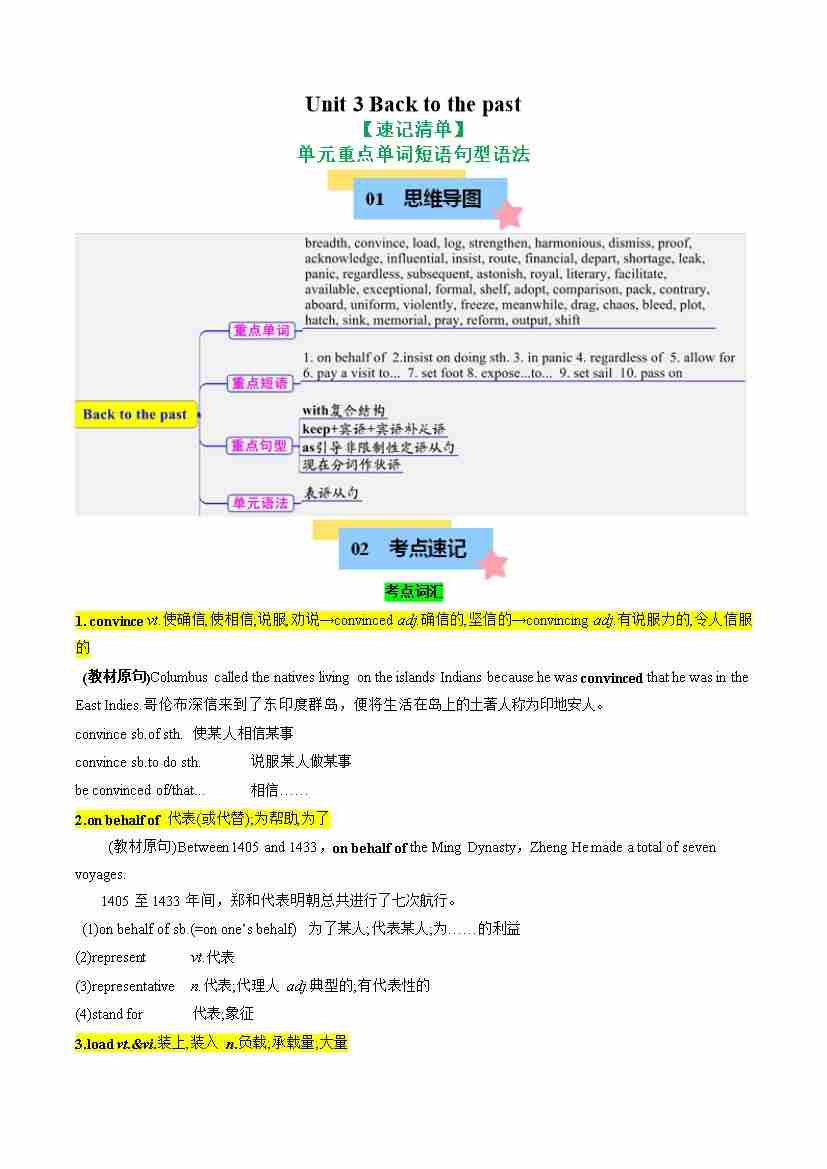 Unit 3 Back to the past(知识清单)(教师版)