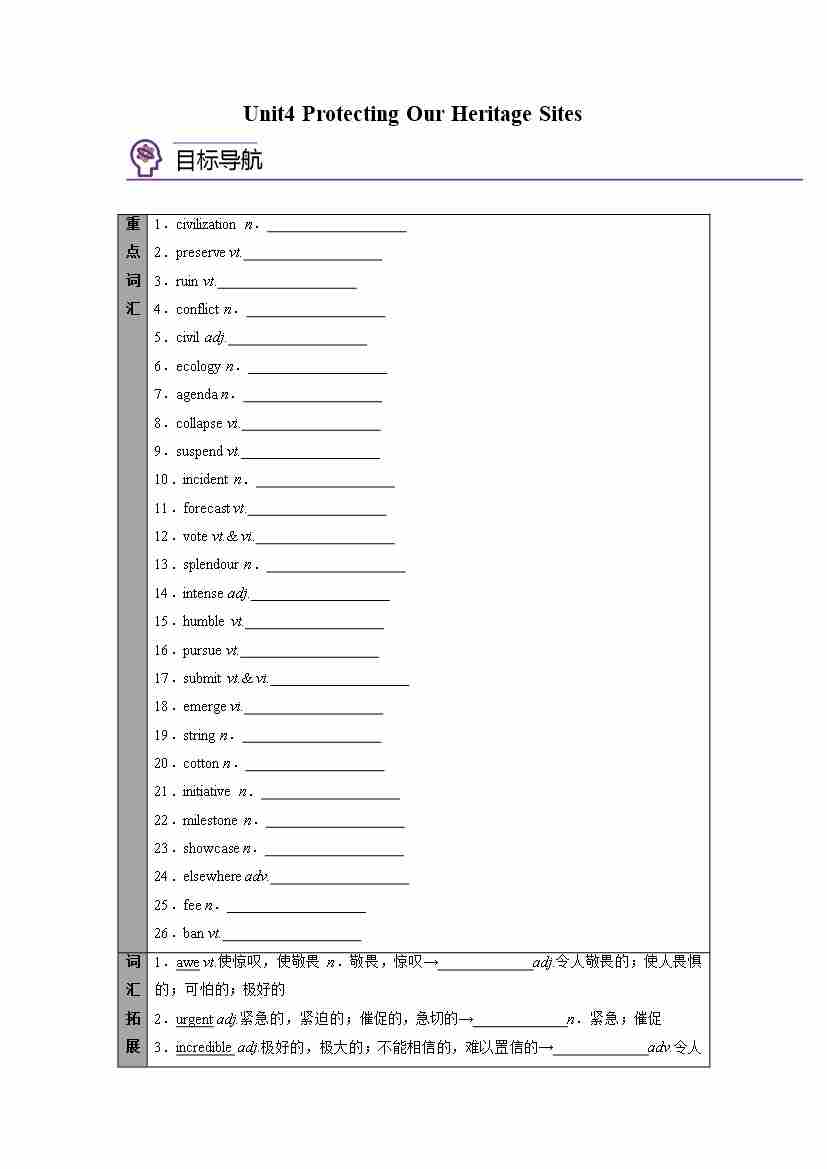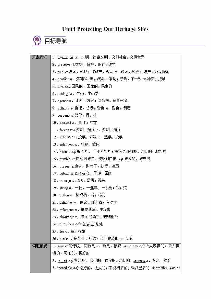 选择性必修第三册Unit4 Protecting Our Heritage Sites(学生版)