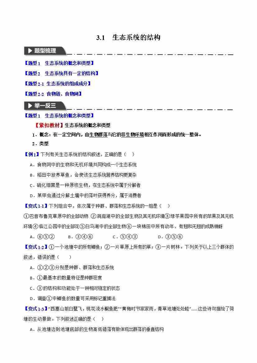 3.2 生态系统的能量流动-举一反三系列 教师版
