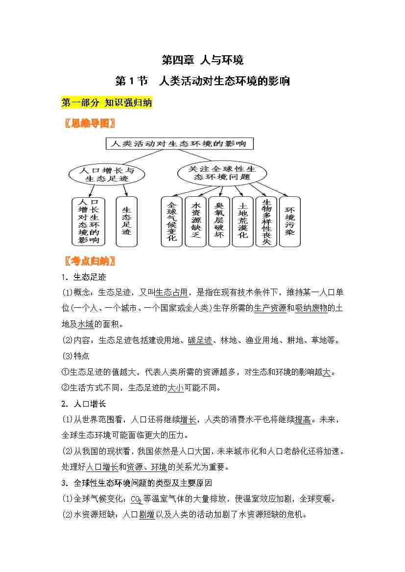 第4.1讲 人类活动对生态环境的影响(学生版)