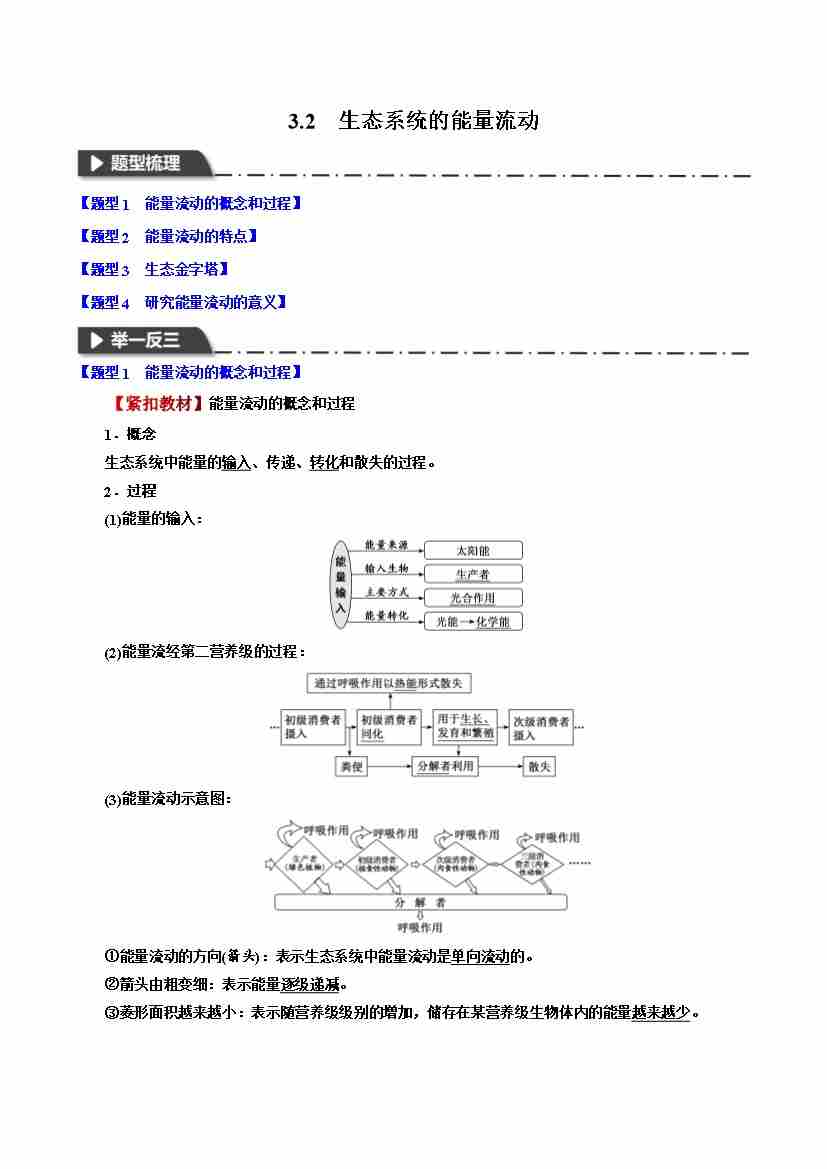 3.2 生态系统的能量流动-举一反三系列 学生版