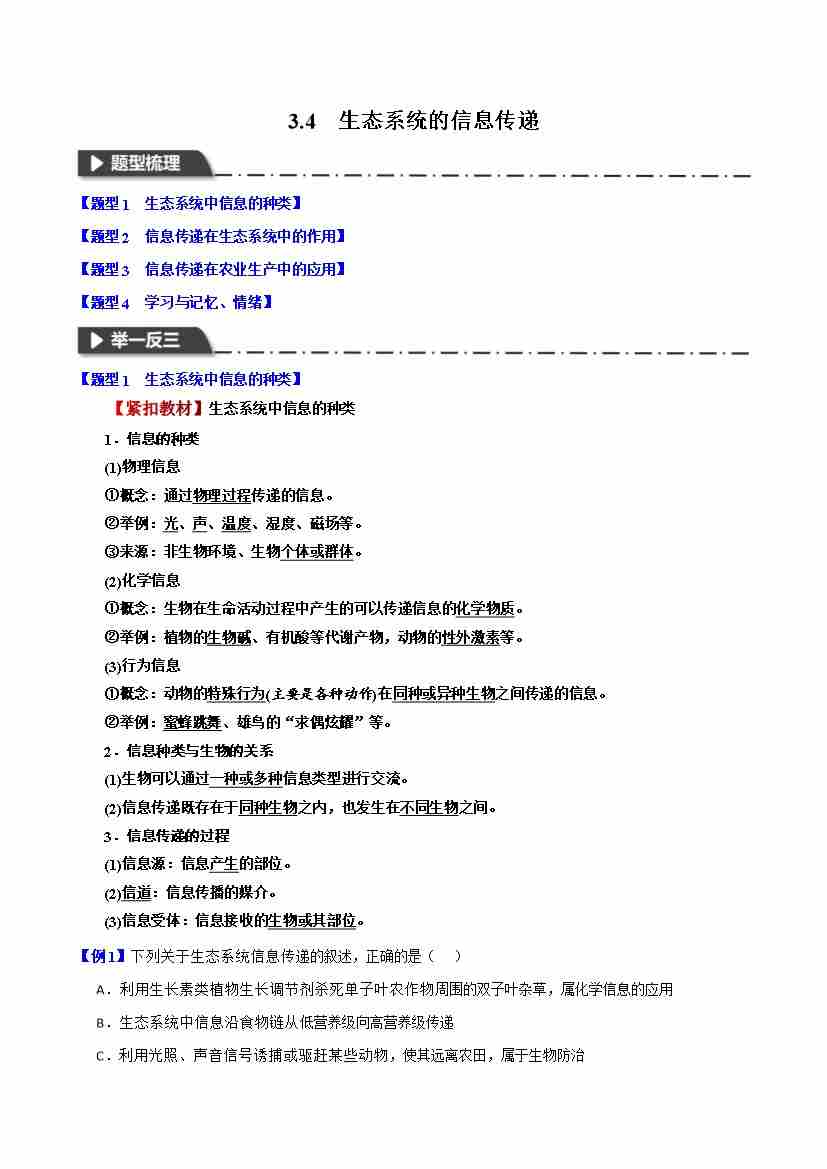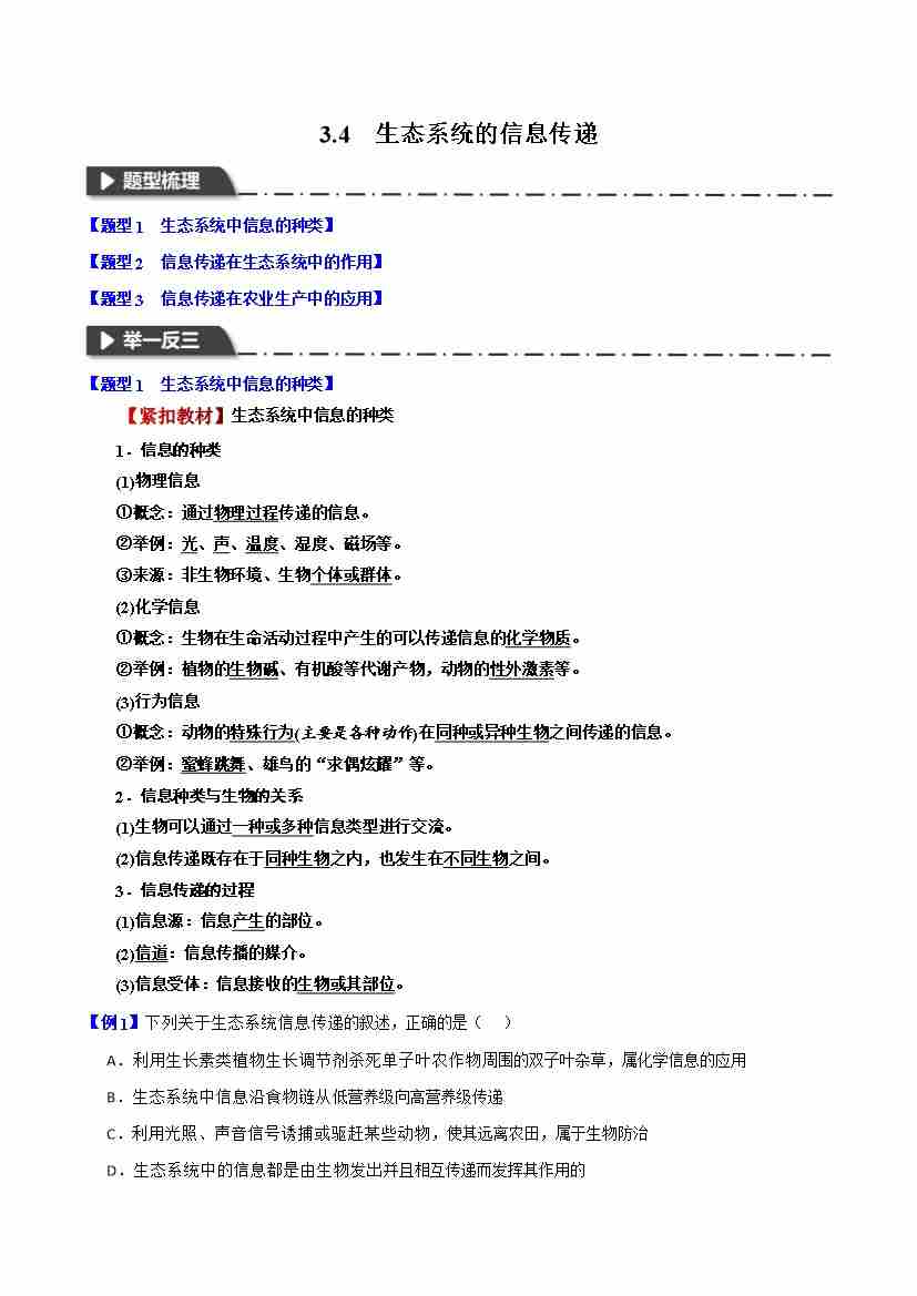 3.4 生态系统的信息传递-举一反三系列 学生版