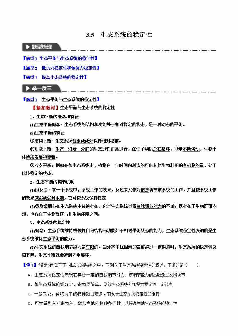 3.5 生态系统的稳定性-举一反三系列 教师版