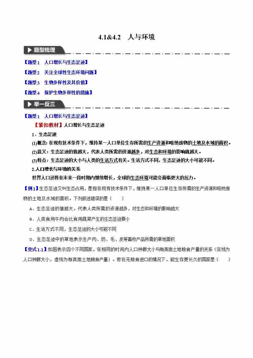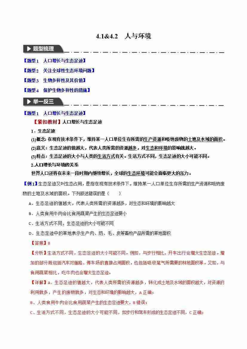 4.1&4.2 人与环境-举一反三系列 学生版