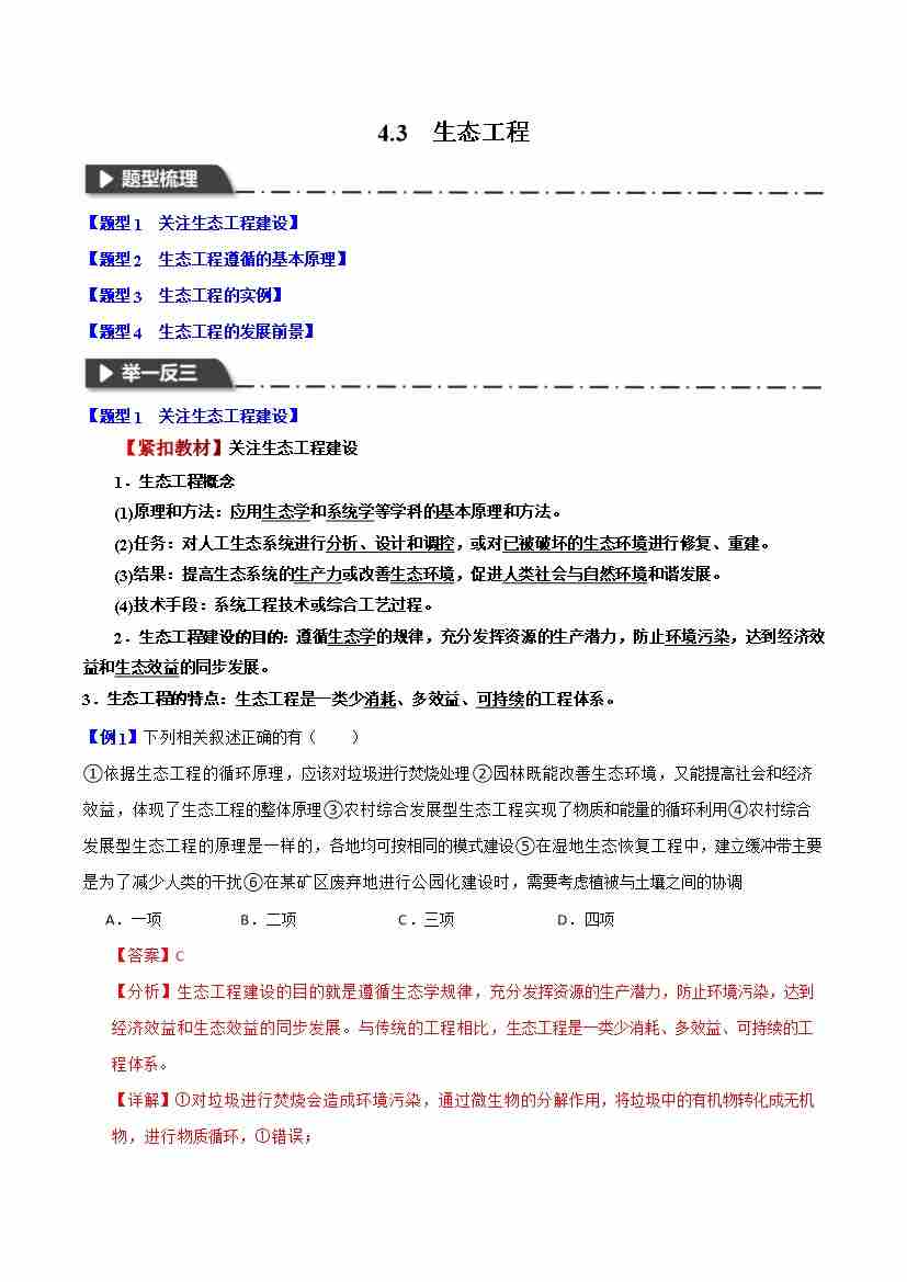 4.3 生态工程-举一反三系列 学生版