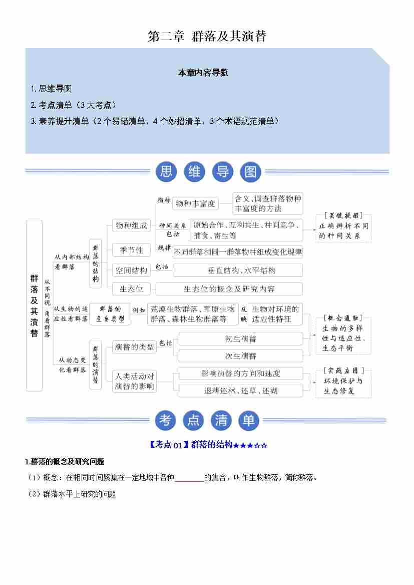 第2章 群落及其演替(期末知识清单)(原卷版)