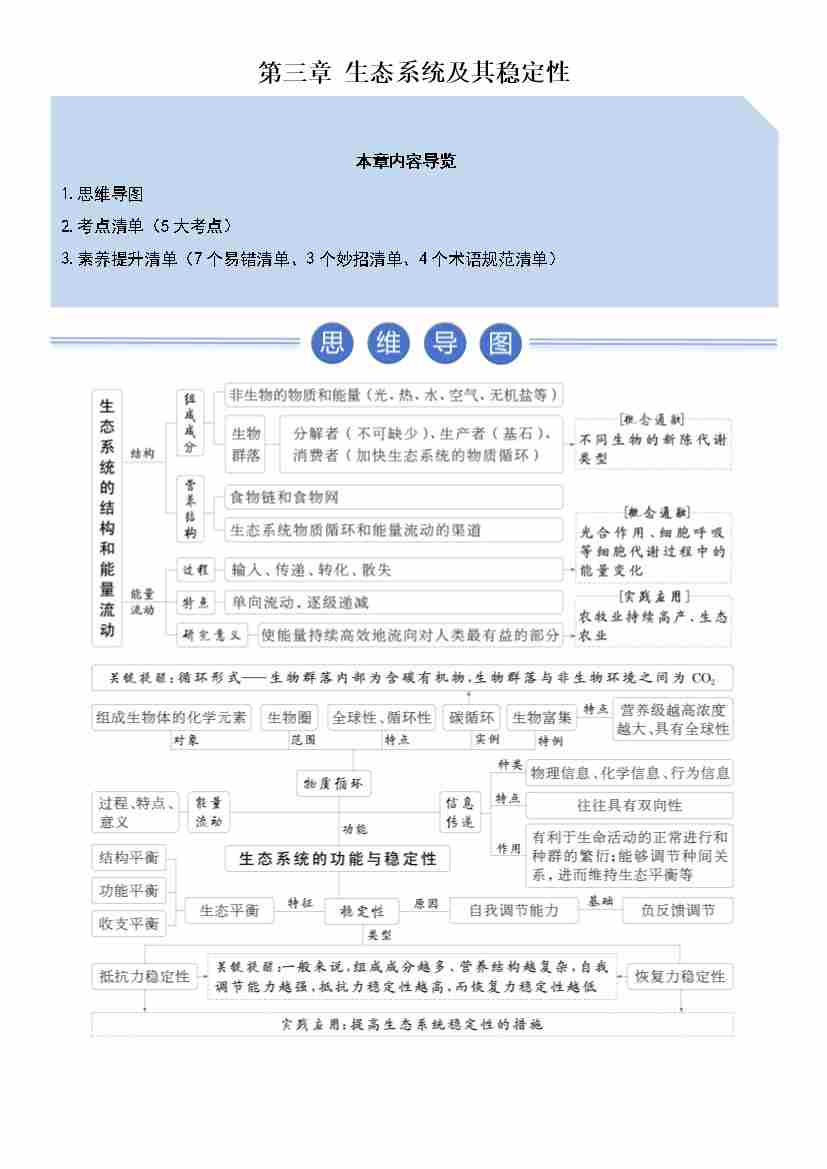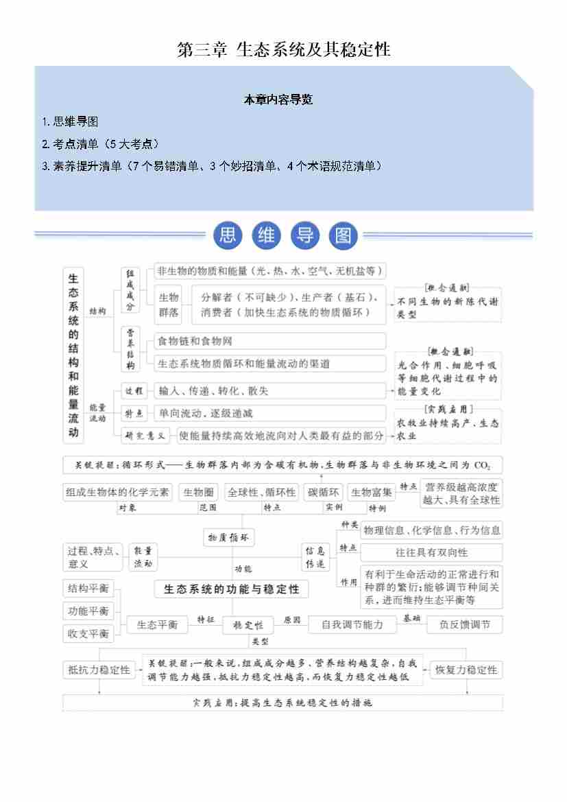 第3章 生态系统及其稳定性(期末知识清单)(原卷版)