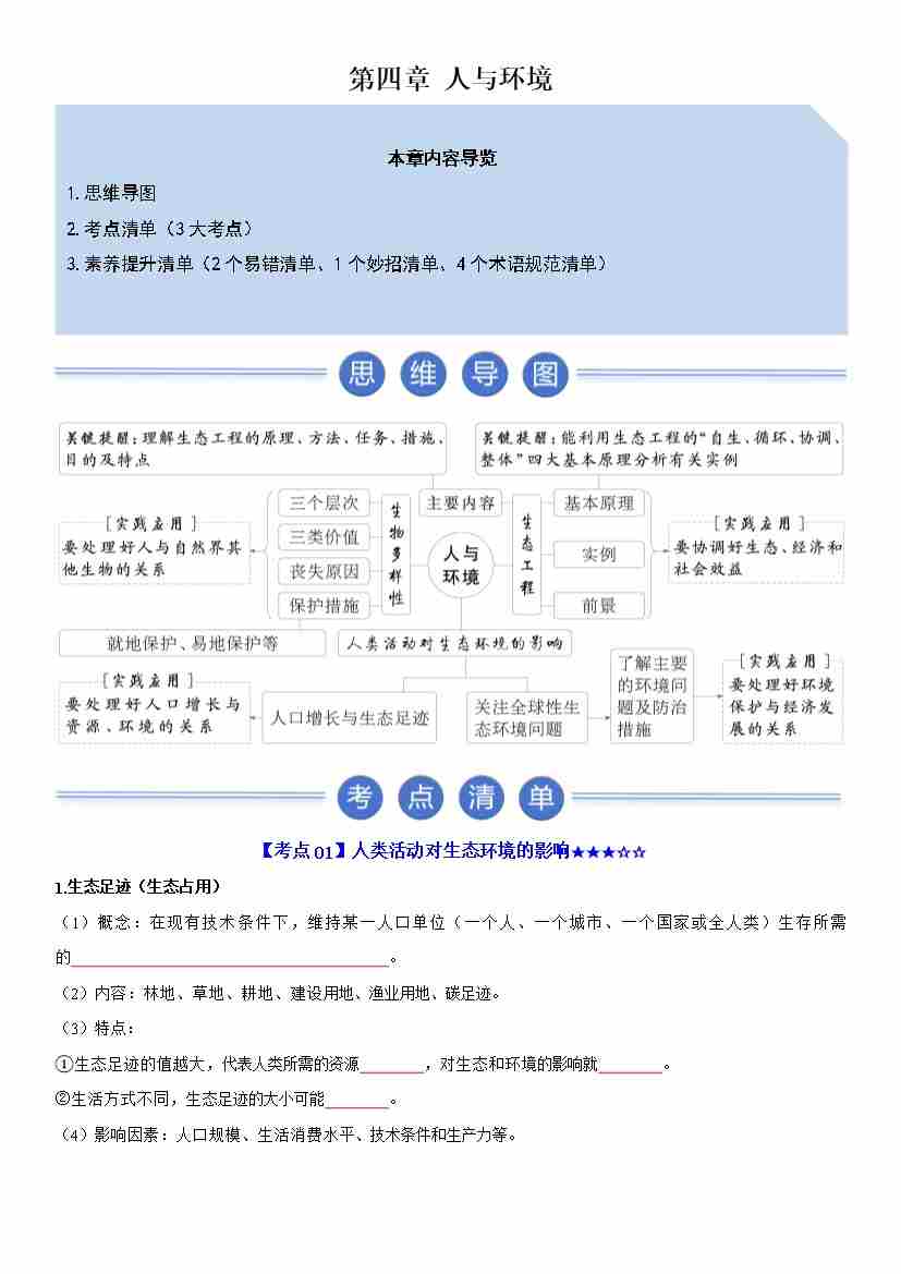 第4章 人与环境(期末知识清单)(原卷版)