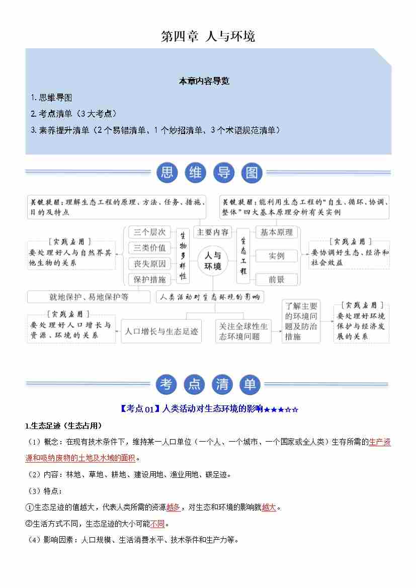 第4章 人与环境(期末知识清单)(解析版)