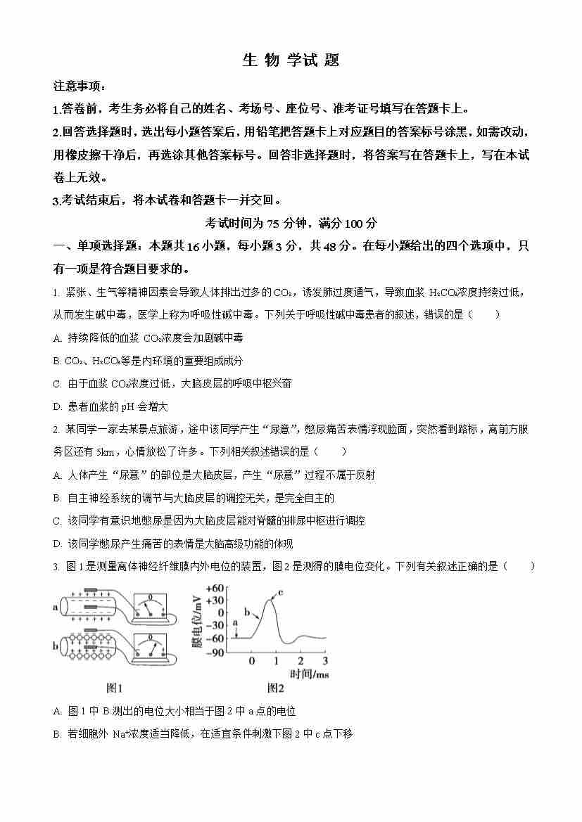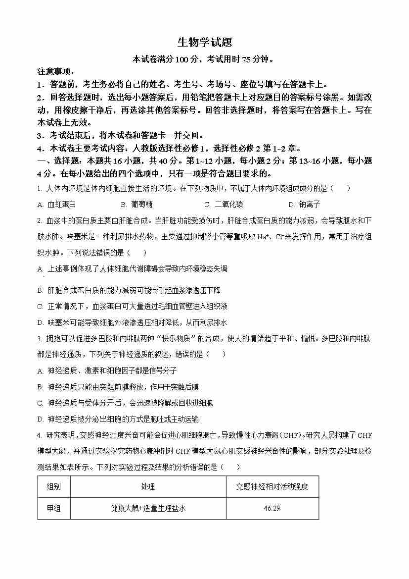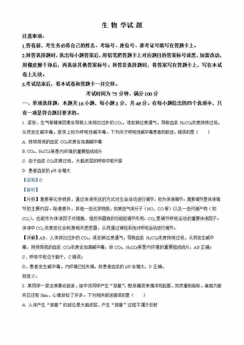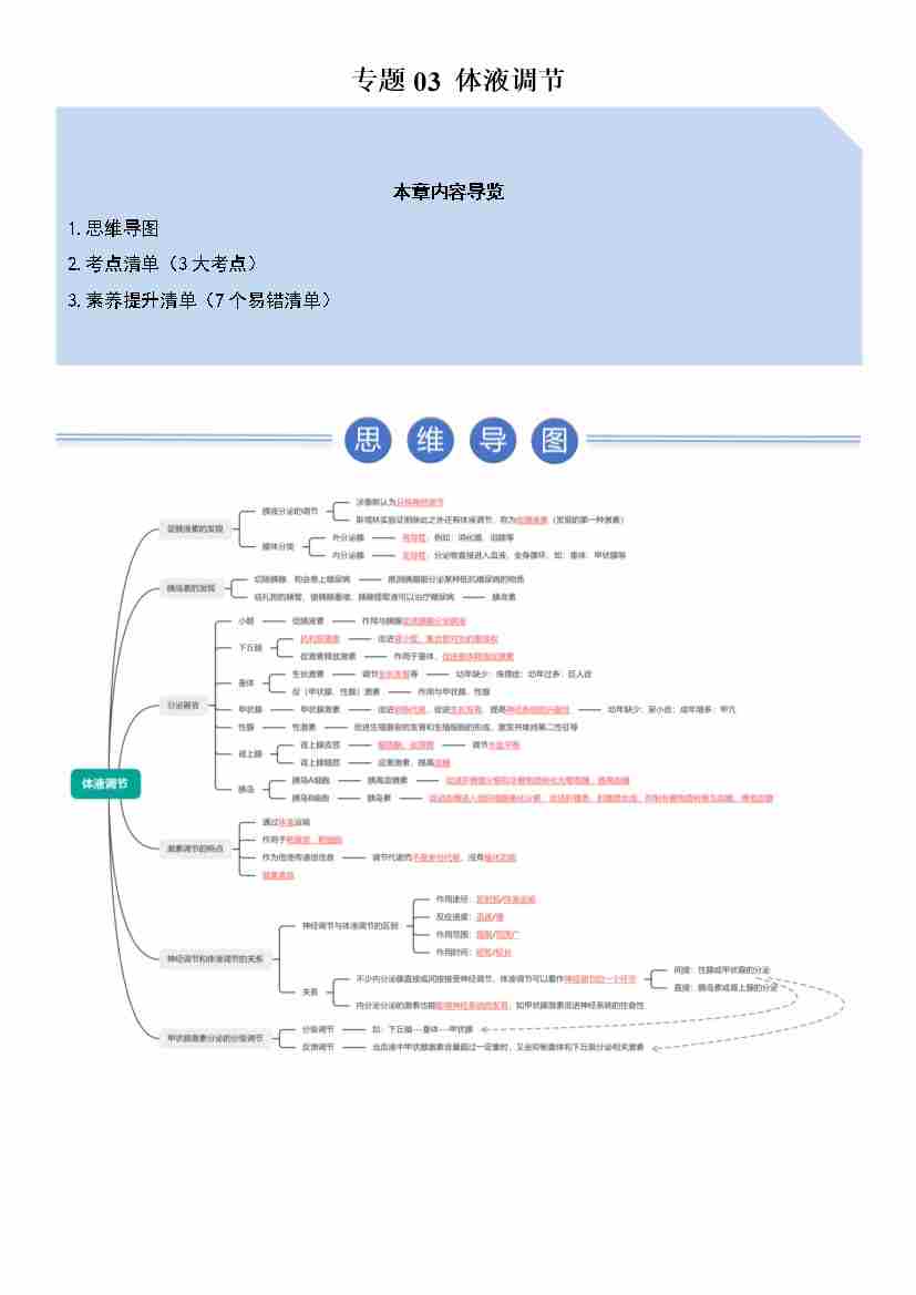 专题03 体液调节(期末复习知识清单)(原卷版)