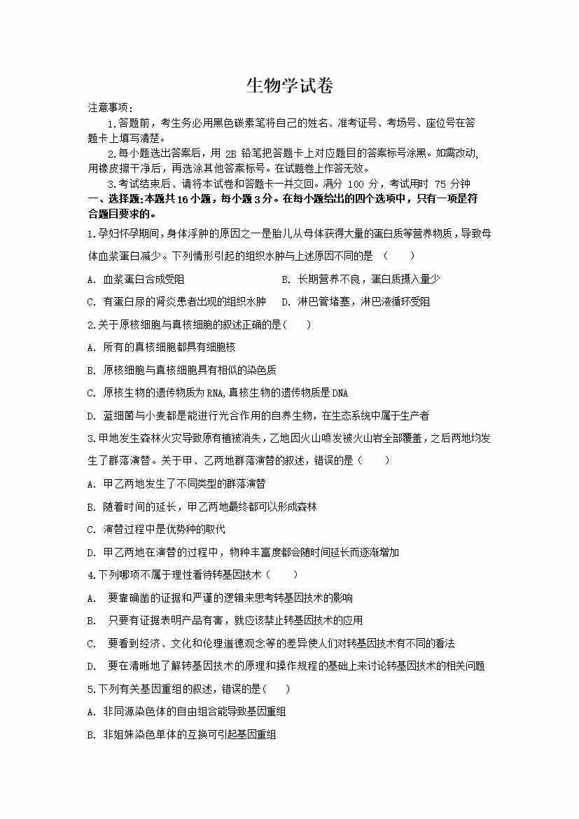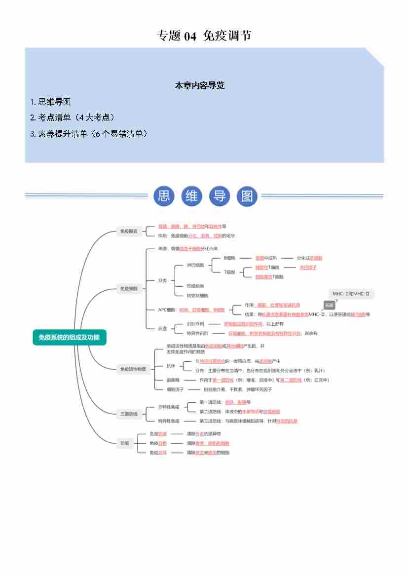 专题04 免疫调节(期末复习知识清单)(原卷版)