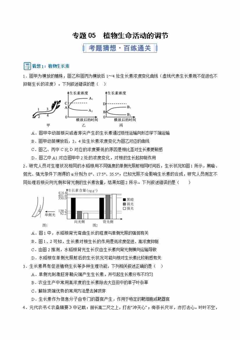 专题05 植物生命活动的调节(期末复习专项训练)(原卷版)