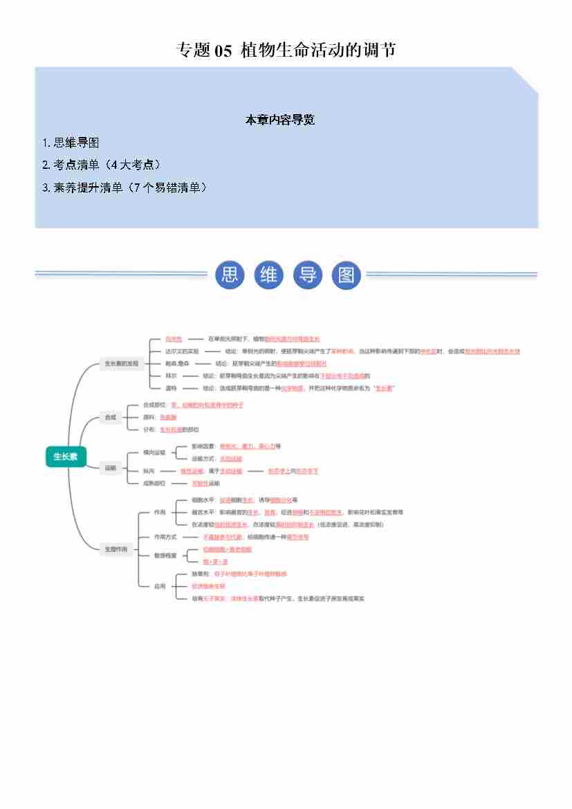 专题05 植物生命活动的调节(期末复习知识清单)(原卷版)