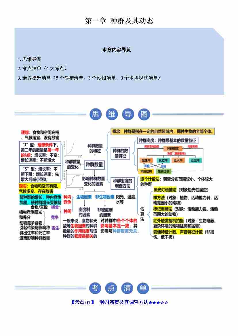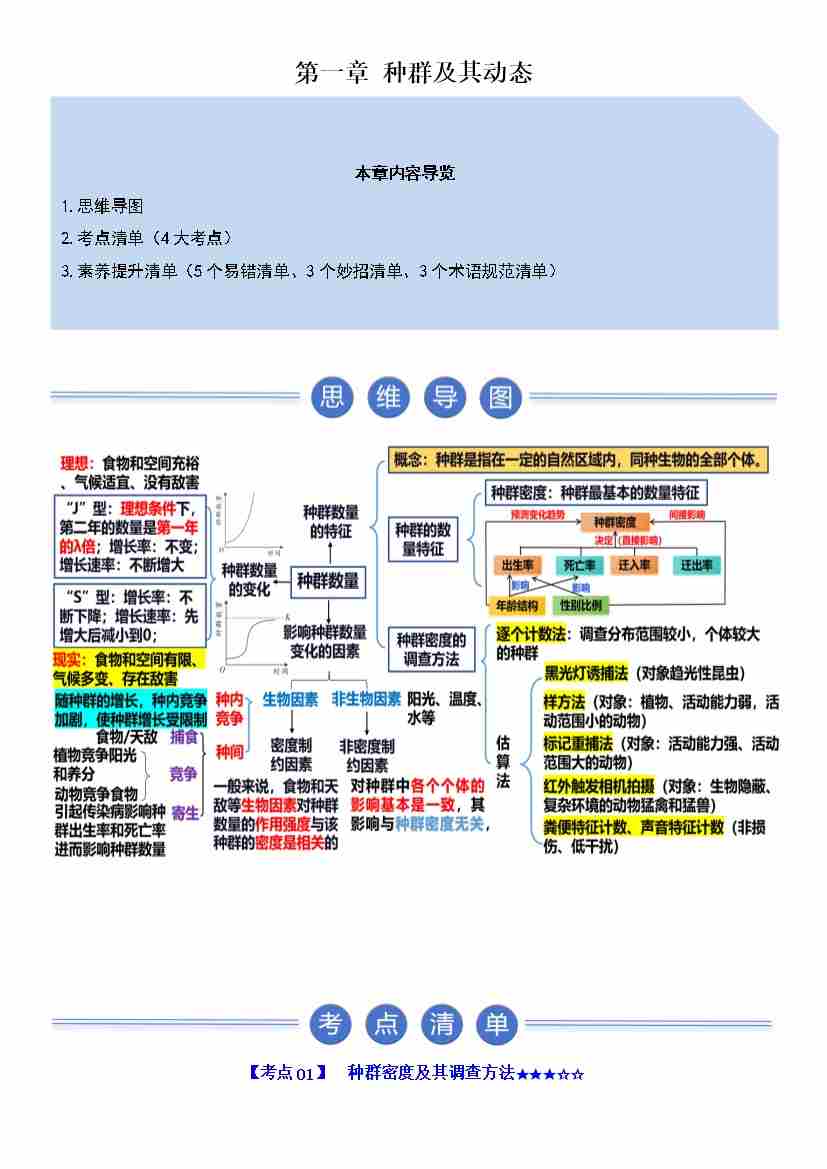 第1章 种群及其动态(期末知识清单)(原卷版)