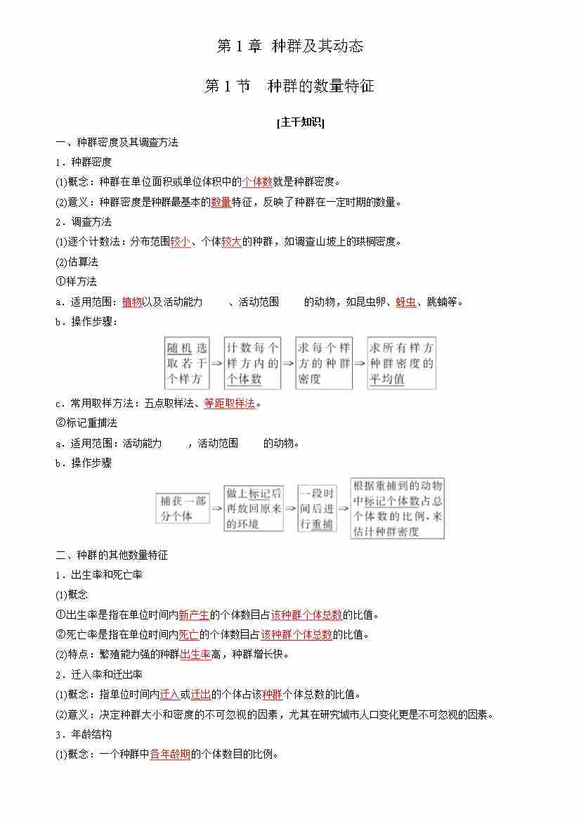 第1章 种群及其动态(考点串讲)-高二生物上学期期中