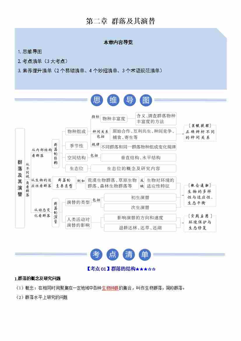 第2章 群落及其演替(考点串讲)-高二生物上学期期中