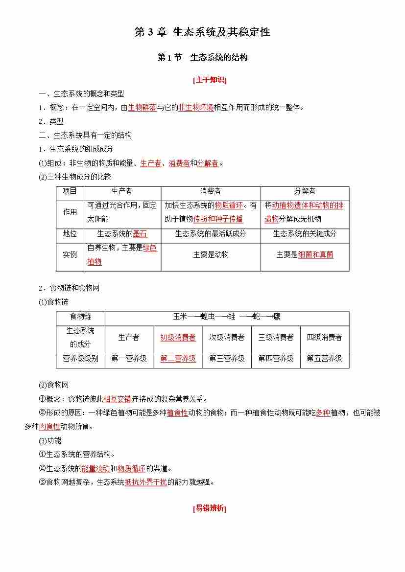 第3章 生态系统及其稳定性(考点串讲)-高二生物上学期期中