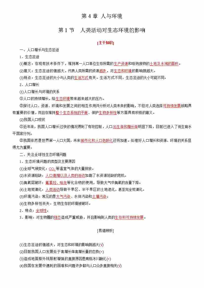 第4章 人与环境(考点串讲)-高二生物上学期期中