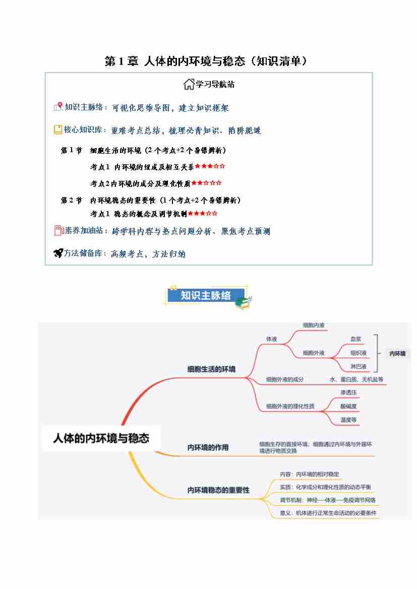 第1章 人体的内环境与稳态(知识清单)(学生版)