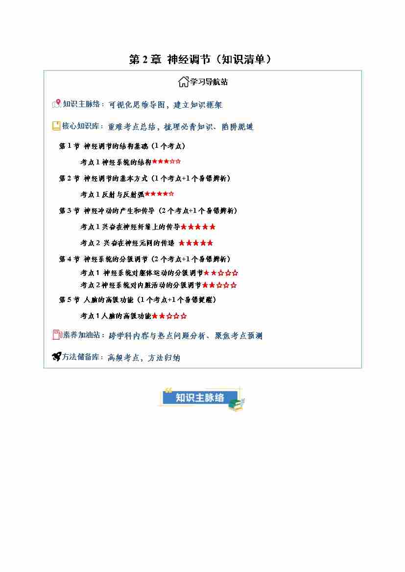 第2章 神经调节(知识清单)(学生版)