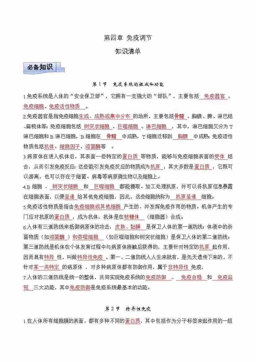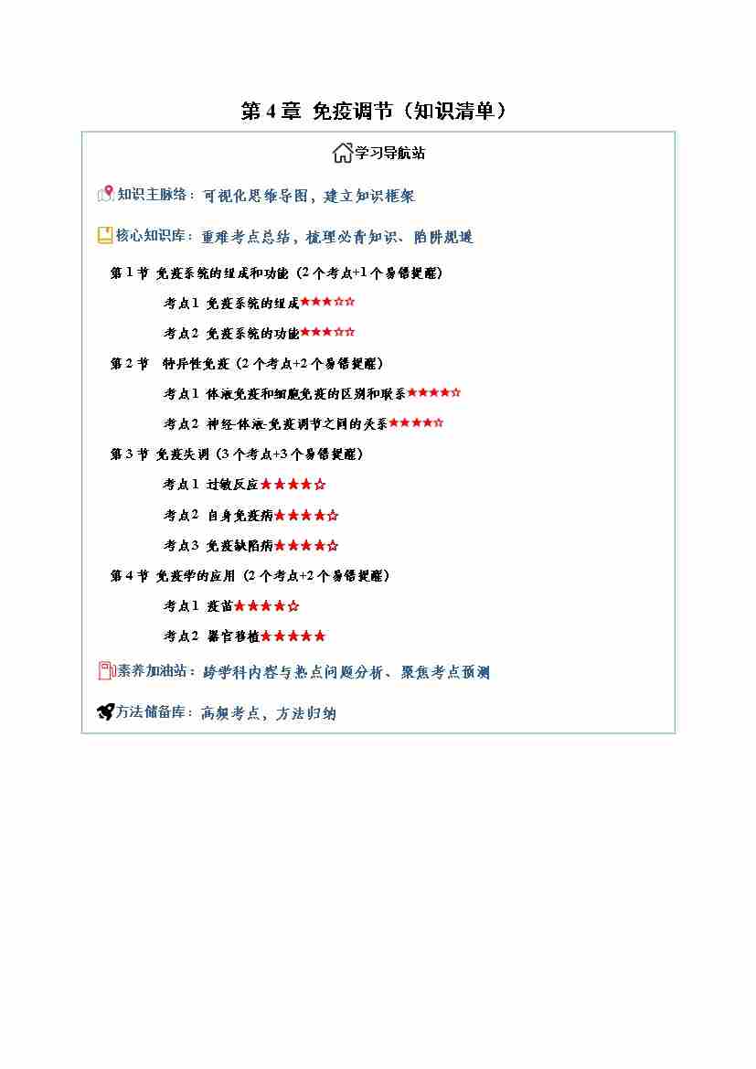 第4章 免疫调节(知识清单)(教师版)