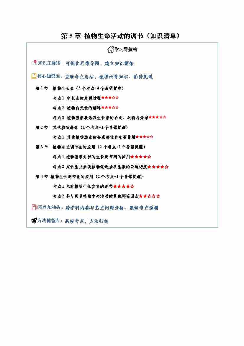 第5章 植物生命活动的调节(知识清单)(学生版)