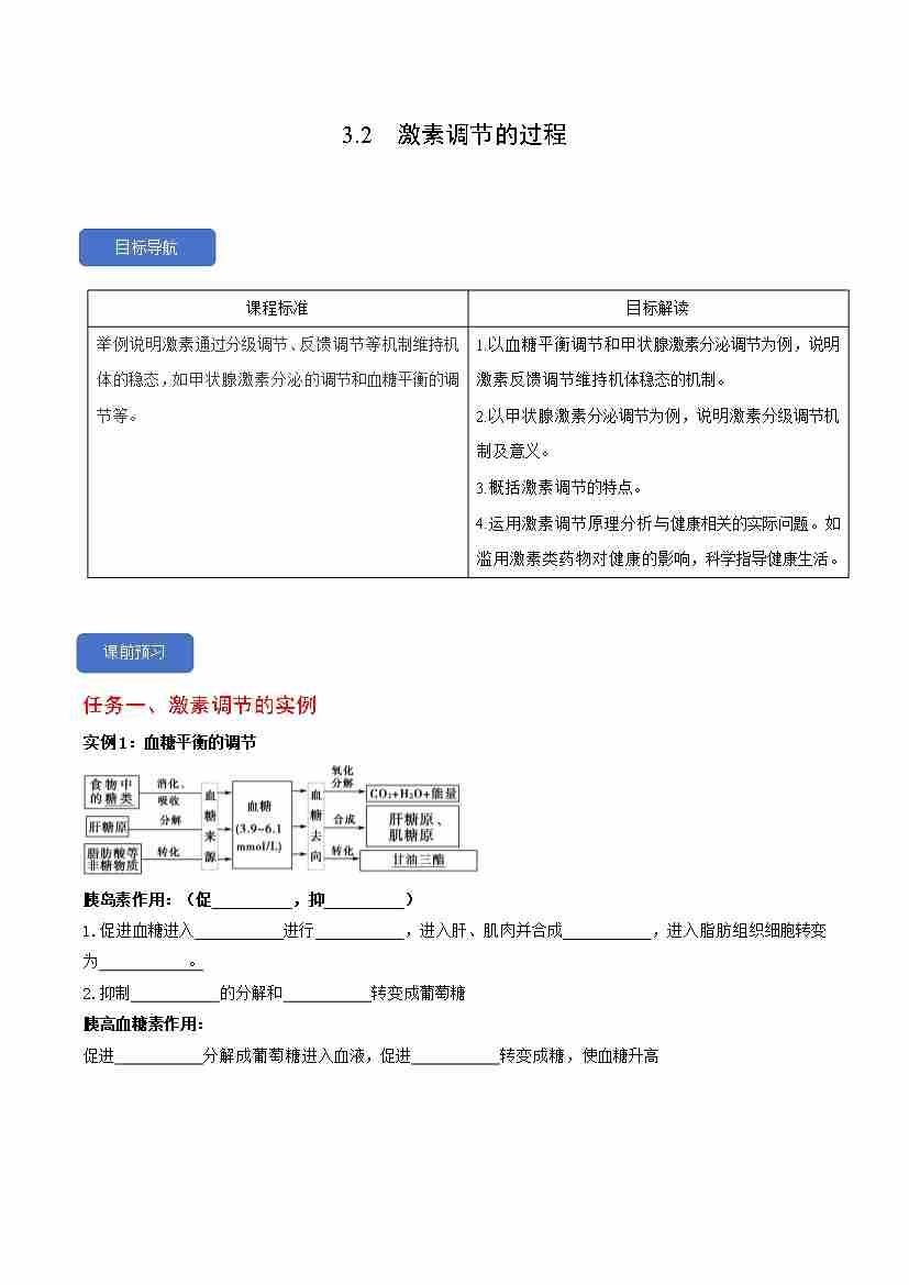 3.2 激素调节的过程(人教版选择性必修1)学生版
