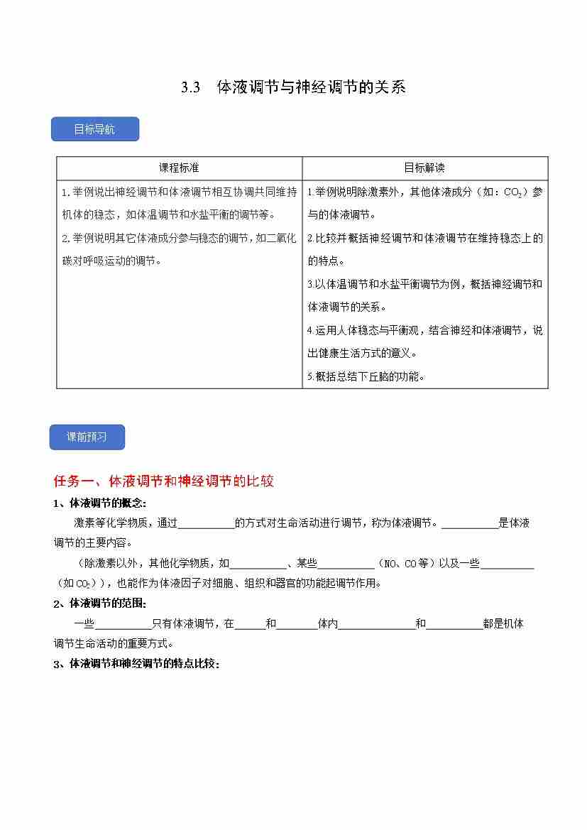 3.3 体液调节与神经调节的关系(人教版选择性必修1)学生版