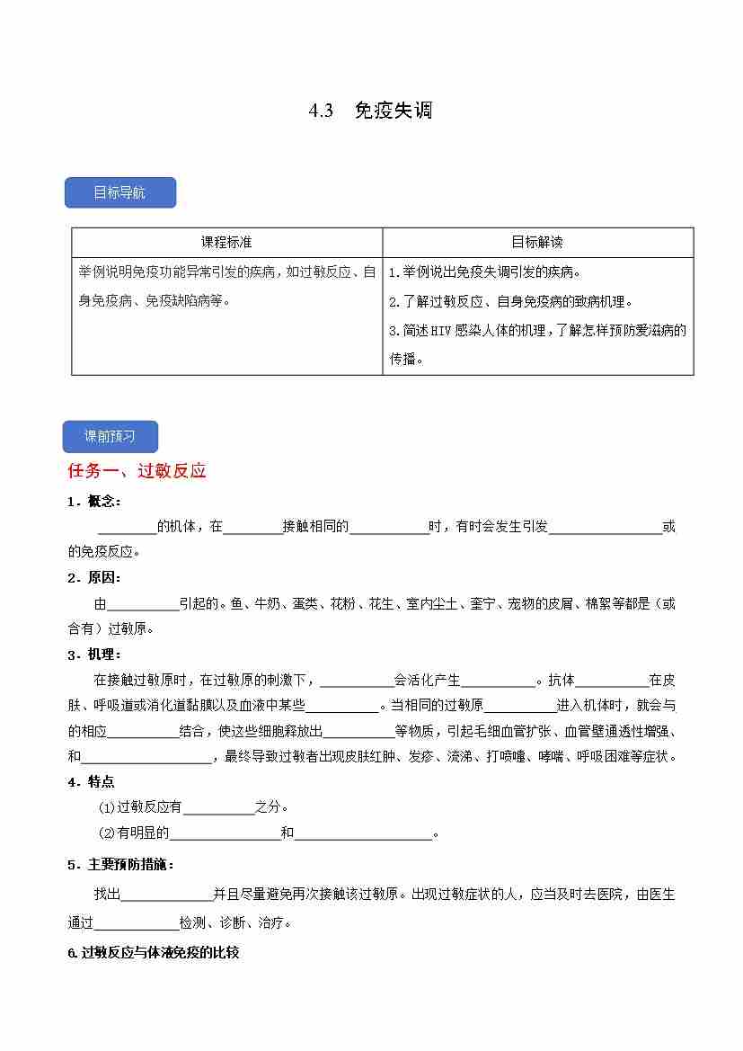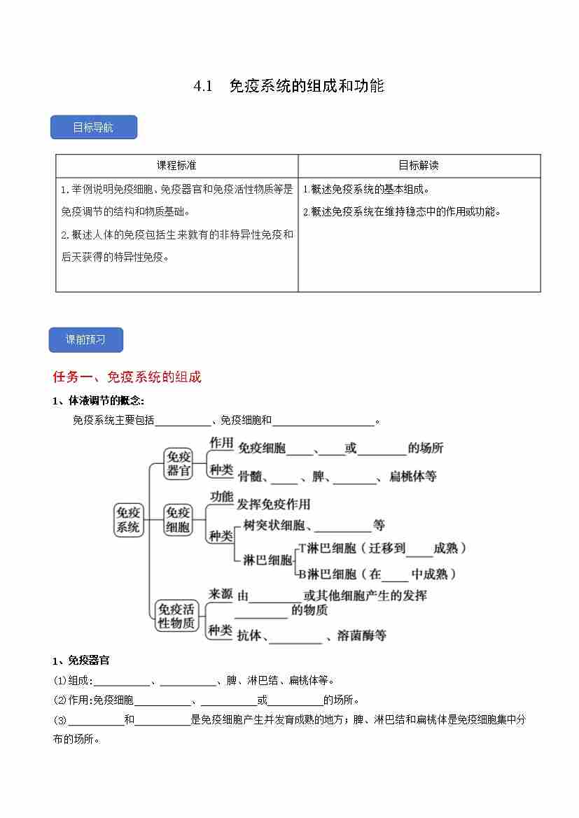 4.1 免疫系统的组成和功能(人教版选择性必修1)学生版