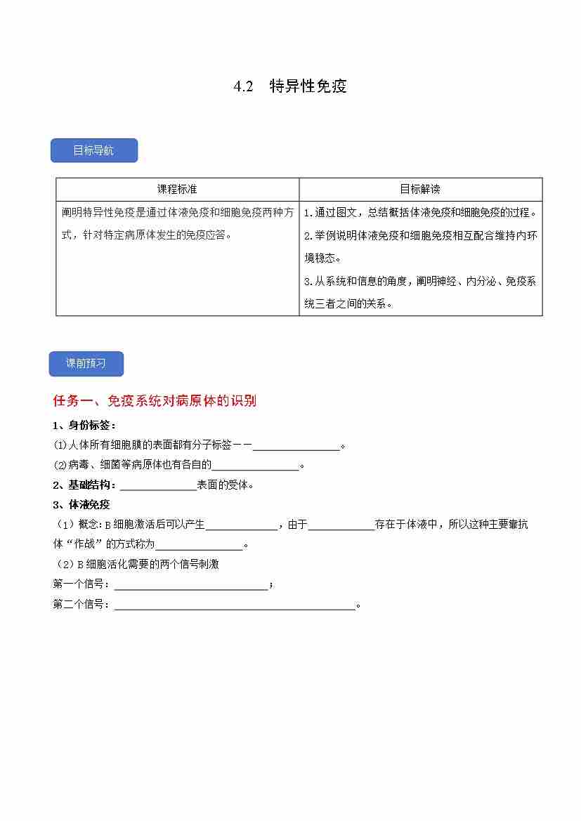 4.2 特异性免疫(人教版选择性必修1)教师版