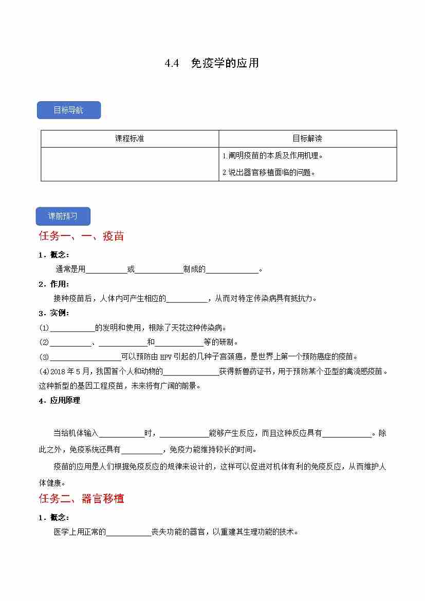 4.4 免疫学的应用(人教版选择性必修1)学生版