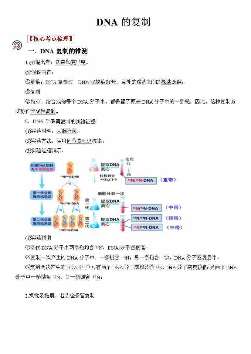 第12讲 DNA的复制(学生版)