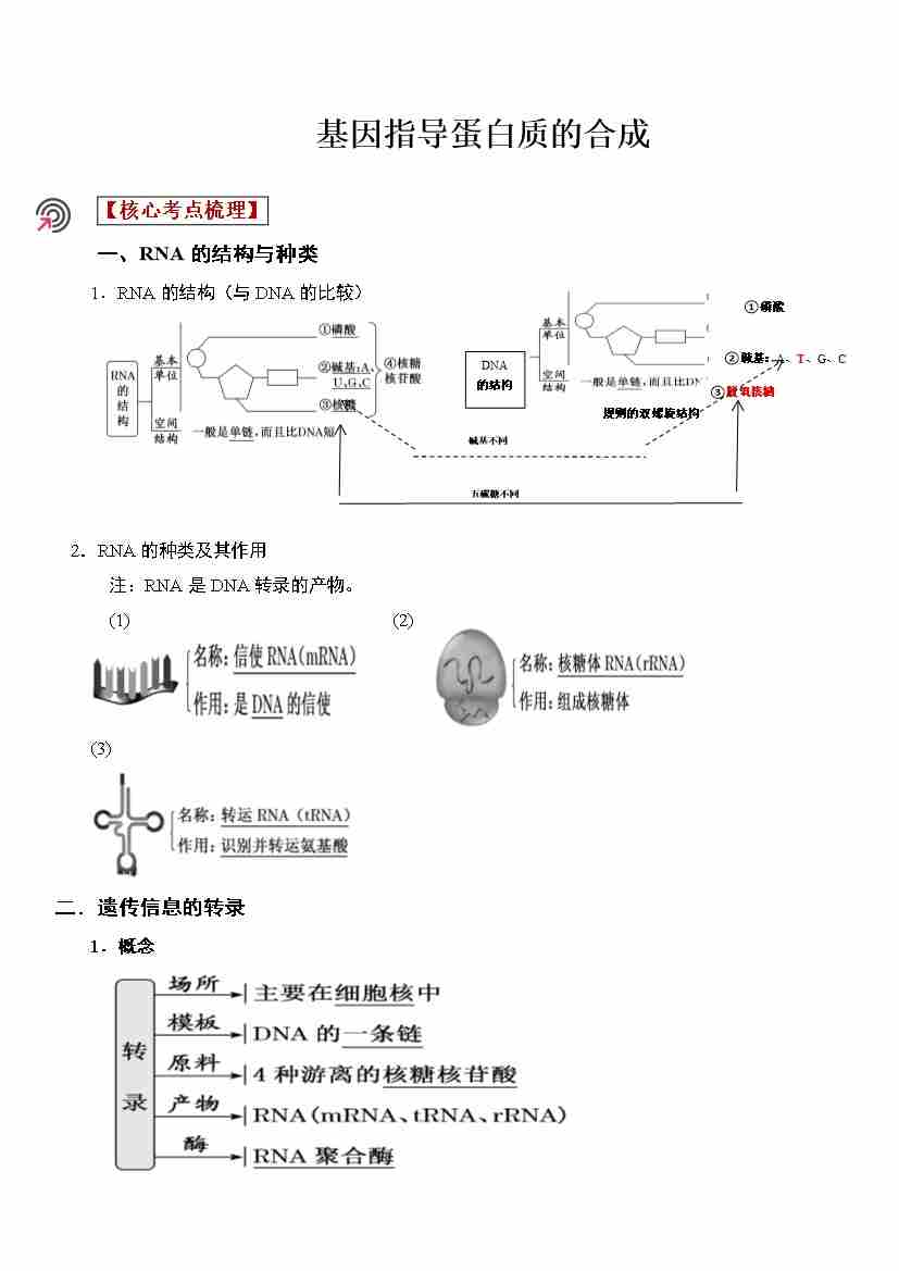 第13讲 基因指导蛋白质的合成(学生版)
