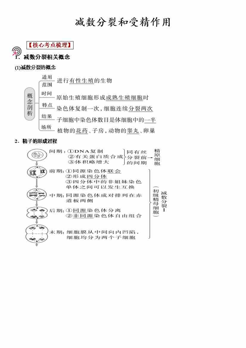 第7讲减数分裂和受精作用(学生版)