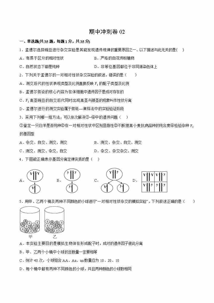 期中冲刺卷02-高一生物下学期期中期(人教版2019必修2)(学生版)