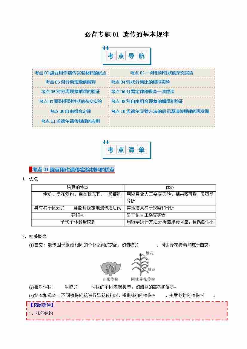 (考点清单)专题01 遗传的基本规律(11大考点)(学生版)
