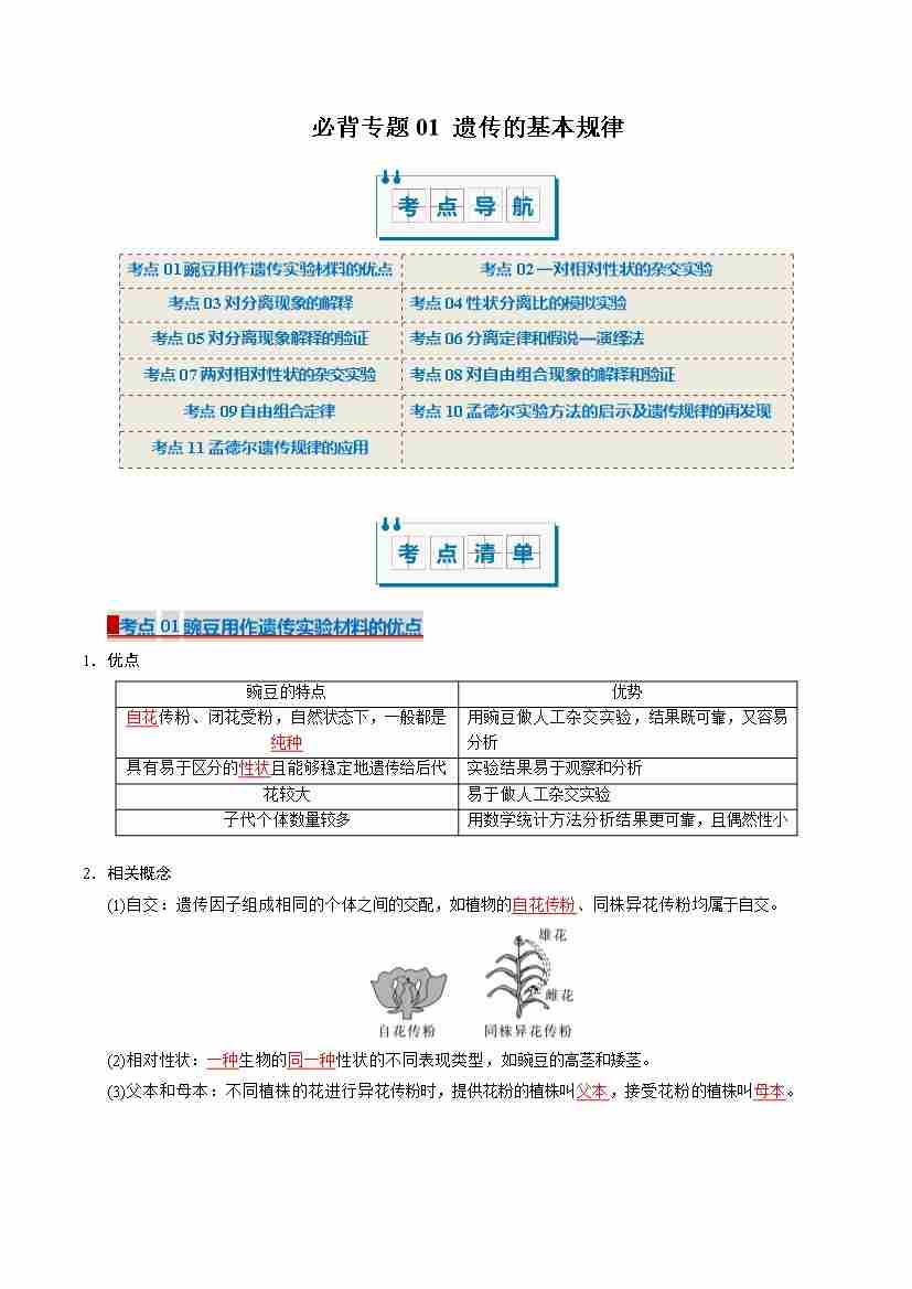 (考点清单)专题01 遗传的基本规律(11大考点)(教师版)