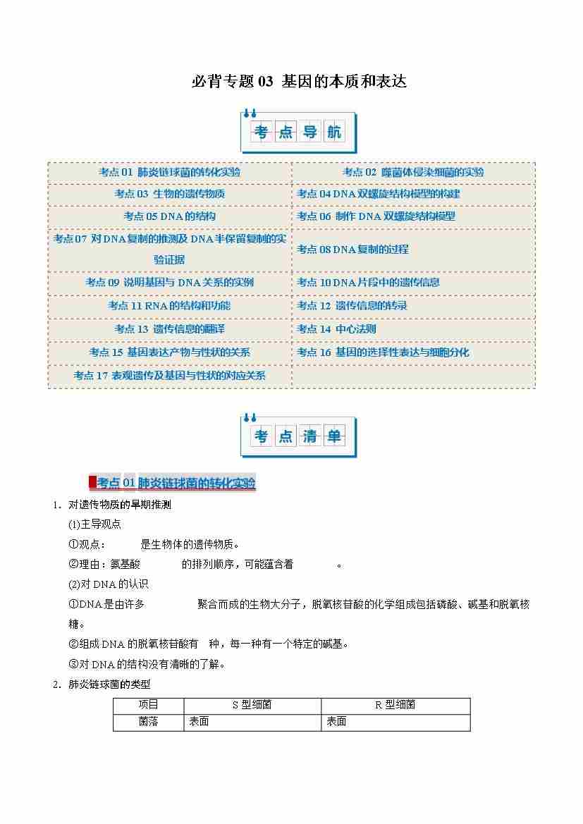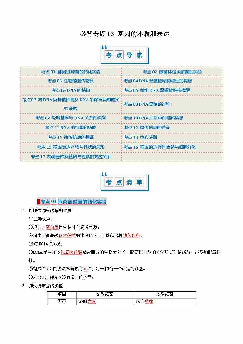 (考点清单)专题03 基因的本质和表达(17大考点)(学生版)